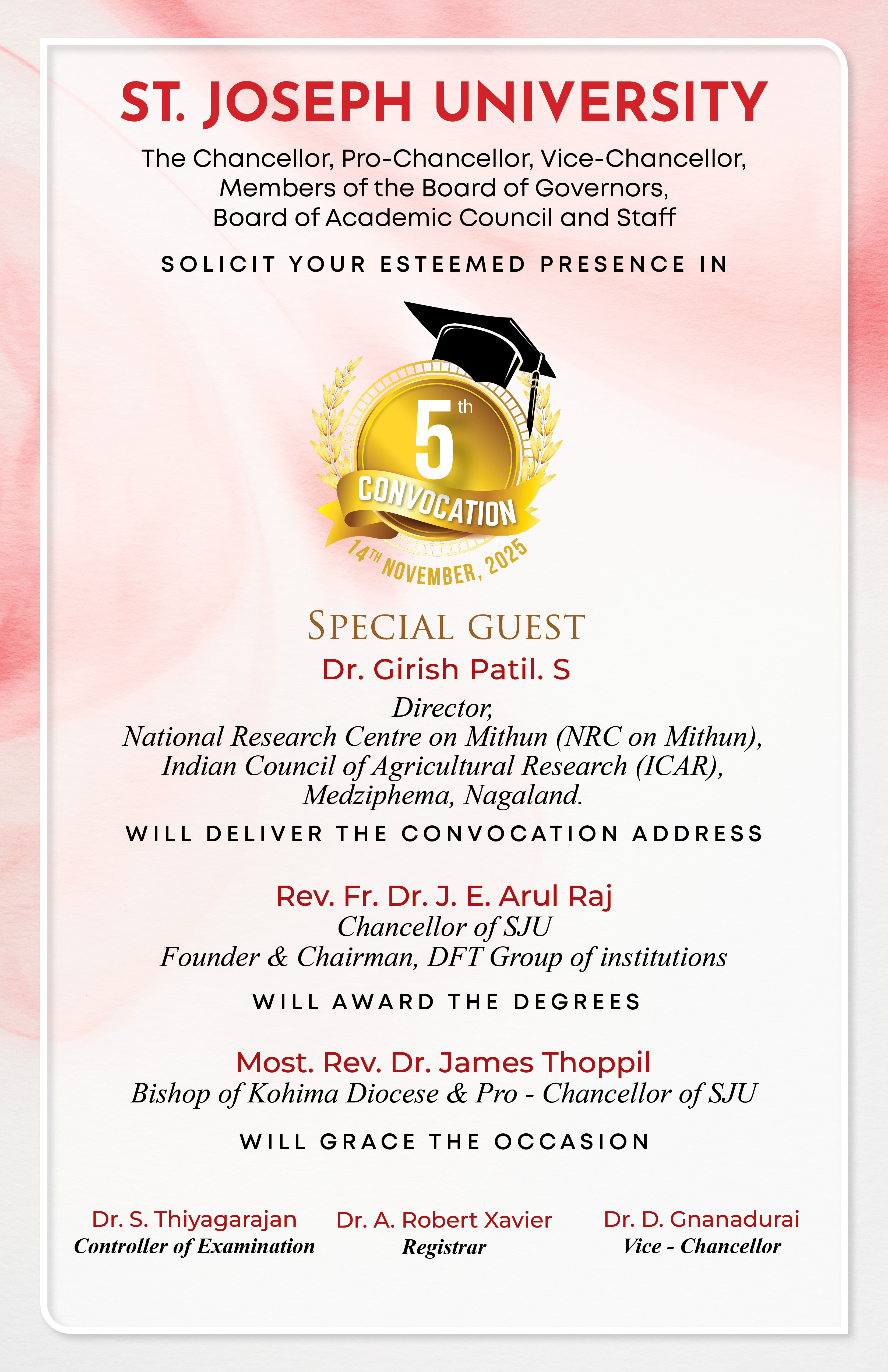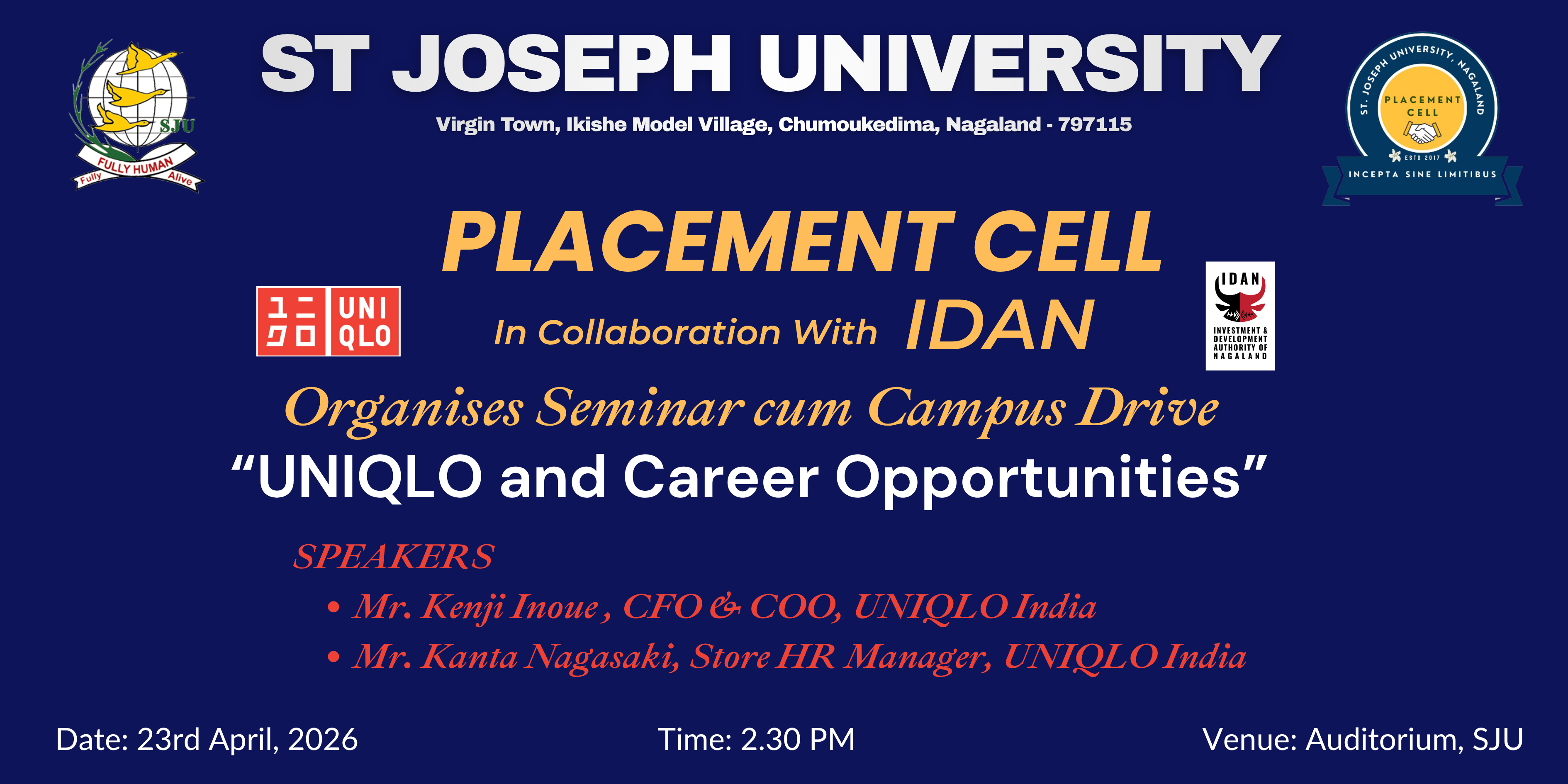 At St. Joseph University, we are committed to the pursuit of knowledge, research and creativity towards entrepreneurship and leadership. The Student-centered learning is aimed at employable education in the changing global situations and ensuring personal and intellectual excellence towards productive careers, meaningful lives and responsible citizenship.